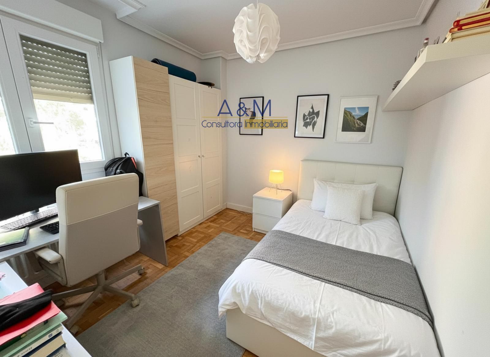 A&M presenta Inmueble ubicado en una zona residencial de alto standing, con vistas despejadas y buena iluminación natural gracias a sus ventanales amplios. Dispone de 131 m2 construidos y 115 m2 útiles, con una distribución que optimiza la circulación y la funcionalidad. En planta se destacan cuatro dormitorios y dos baños completos, uno de ellos con ventana que aporta ventilación y luminosidad. La altura de la vivienda es notable y se percibe una sensación de amplitud en todas las estancias. Plaza de Garaje en el Edificio hermosa.