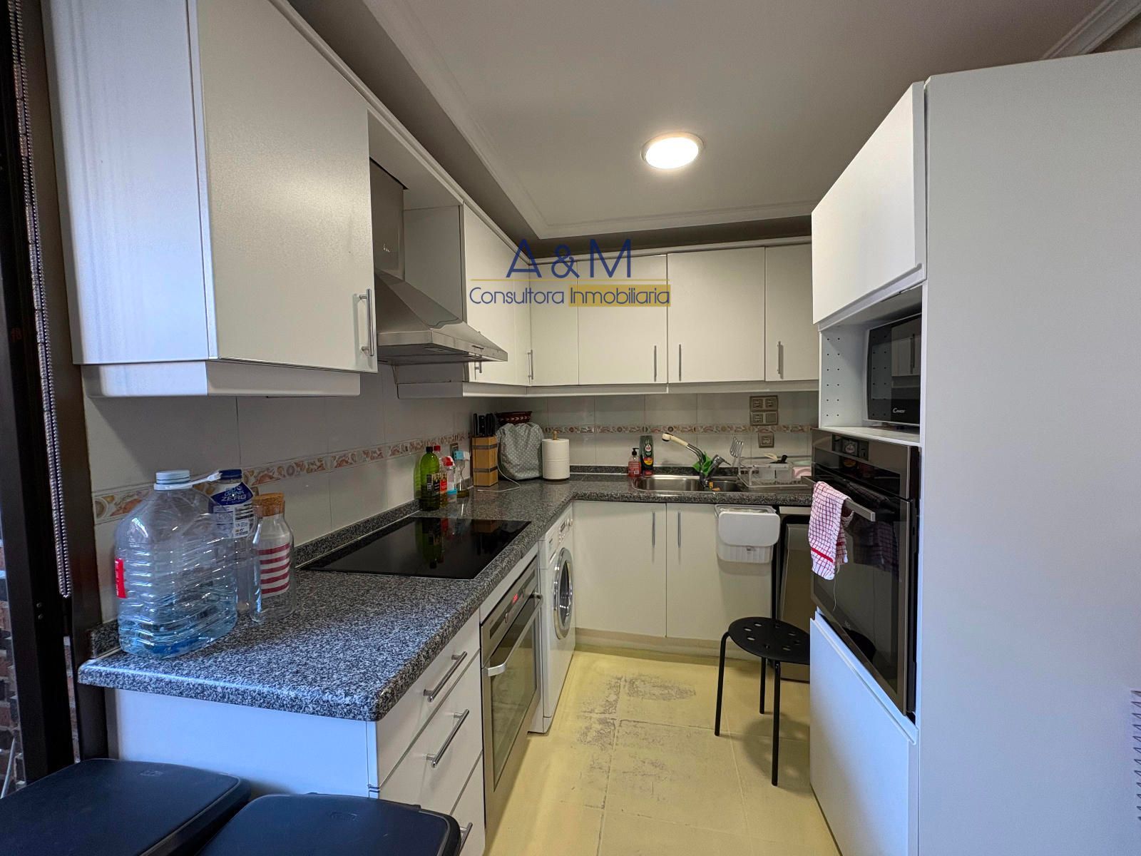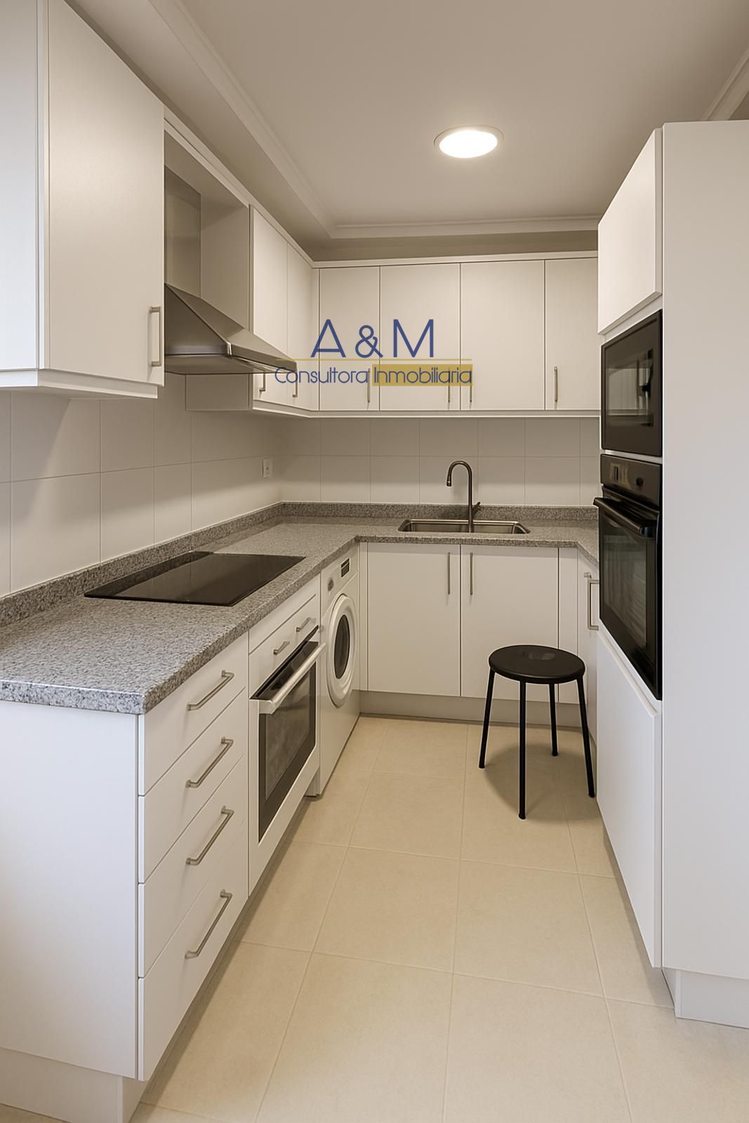 La zona de día combina un salón con terraza incorporada que multiplica las opciones de uso y de convivencia. La cocina está amueblada y cuenta con galería para lavadero, sin electrodomésticos para dejar al comprador la libertad de elegirlos. El conjunto se complementa con armarios empotrados en las habitaciones y con aire acondicionado en los dormitorios, garantizando confort térmico todo el año. Se observa un acabado de suelos de parquet en las zonas habitables y cerámica en la cocina, con una estética neutra para facilitar la personalización.