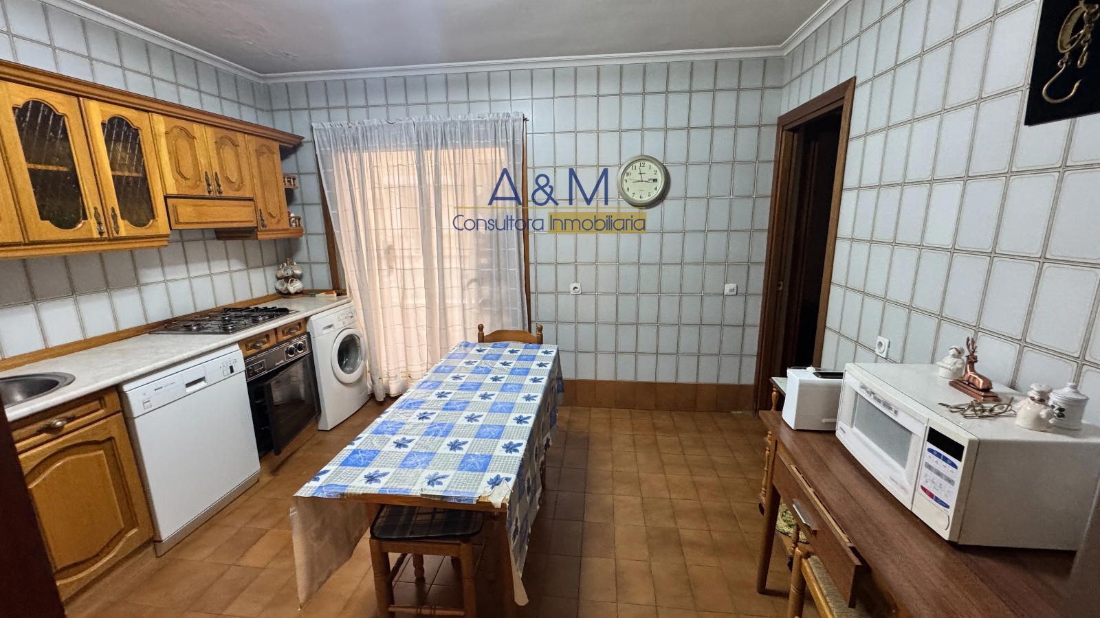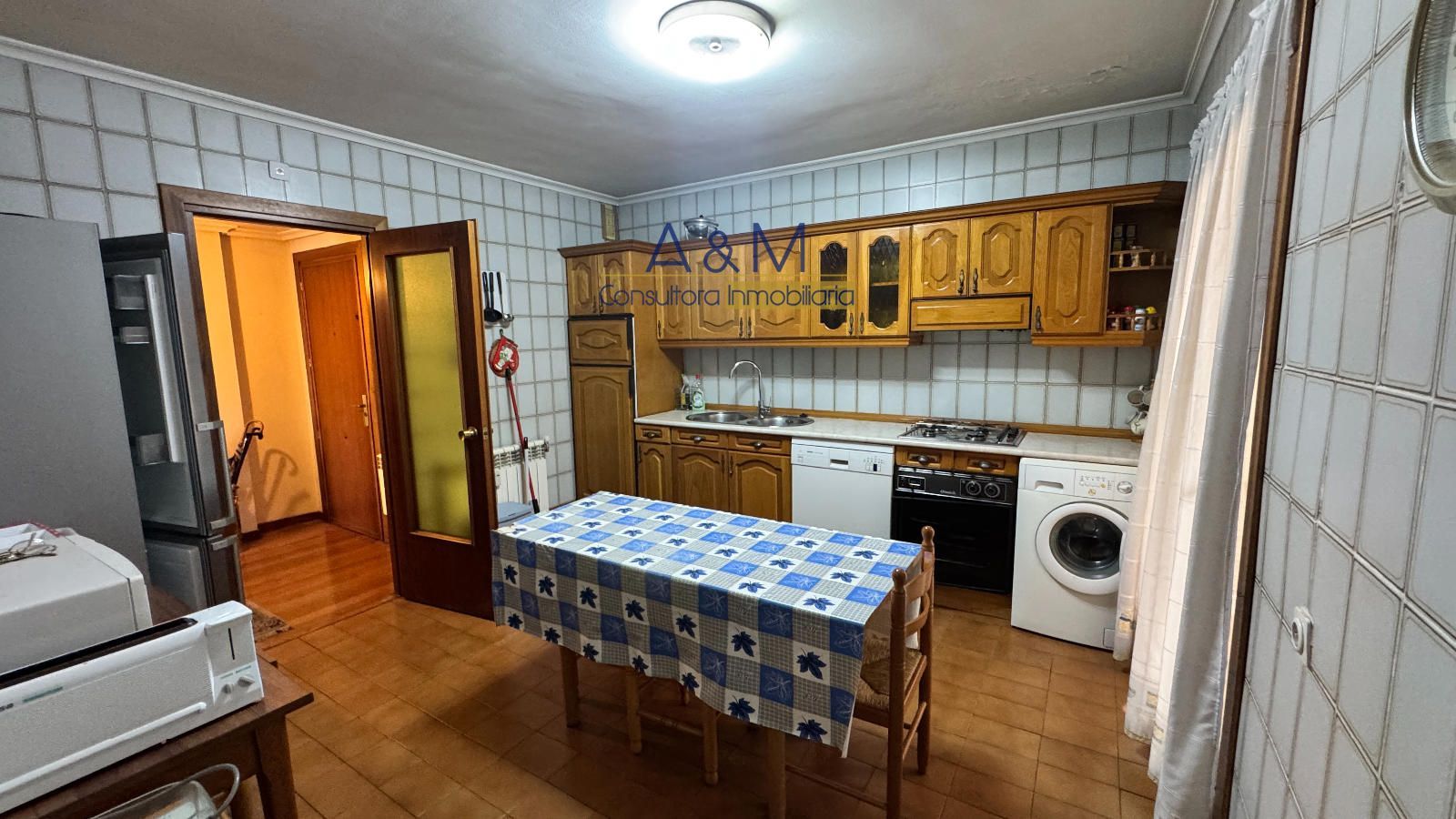 La cocina es amplia y está amueblada excepto el frigorífico, diseñada para uso familiar diario, con posibilidades de futuro acondicionamiento según tus necesidades. El sistema de calefacción central, con repartidores de coste, garantiza confort estable durante todo el año. Los suelos de parqué aportan calidez y un acabado de calidad que se nota en cada paso.